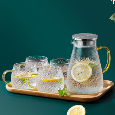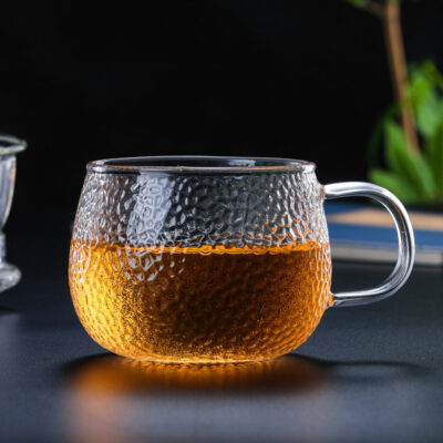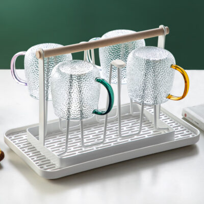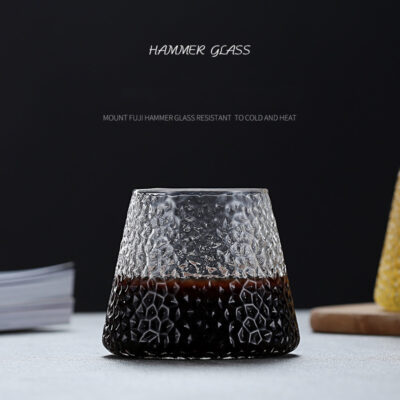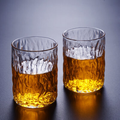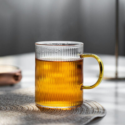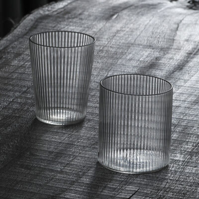 Vertical Stripe Glass Cup With Wooden Sleeve