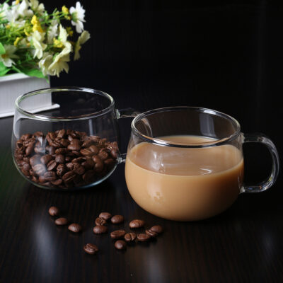 Double Walled Insulated Glass Coffee Mugs With Handle